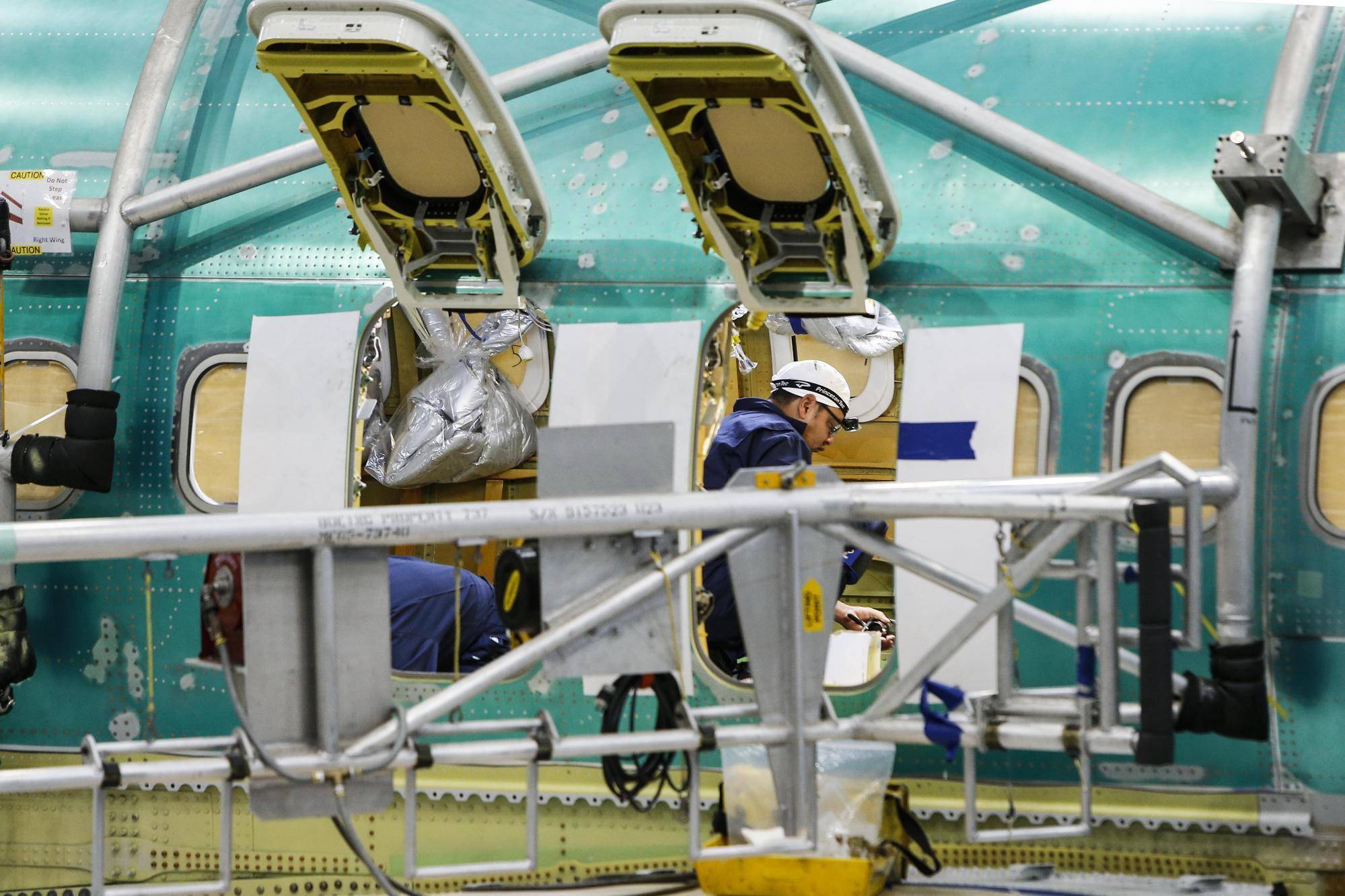 2014年9月26日,工人们在美国华盛顿州波音埃弗里特工厂的737单通道飞机生产线上工作。新华社记者张玉薇摄势必锐航空系统公司为波音生产737系列等商用飞机机身以及防务、航天项目的关键零部件。波音去年7月宣布收购势必锐。包括后者的负债在内,这笔交易总金额约83亿美元。